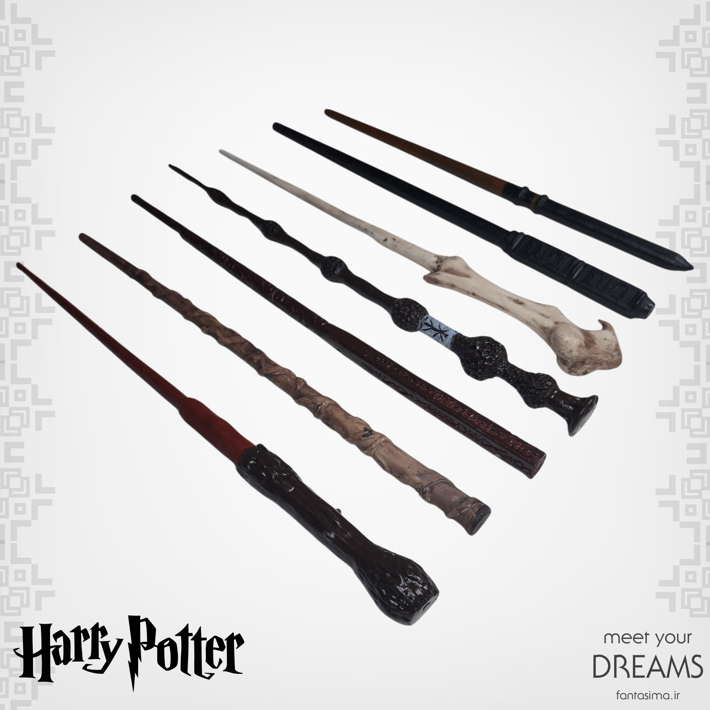 • چوبدستی ها در کارگاه فانتزیما رنگ آمیزی شدن و تلاش کردیم همون طور که در عکس میبینید مشابه فیلم باشن.